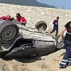 Denizli'de sürücünün direksiyon hakimiyetini kaybettiği otomobil yoldan taklalar atarak boş arazide ters yattı. Takla atan otomobilin altında kalan sürücü sıkışarak feci şekilde can verdi.