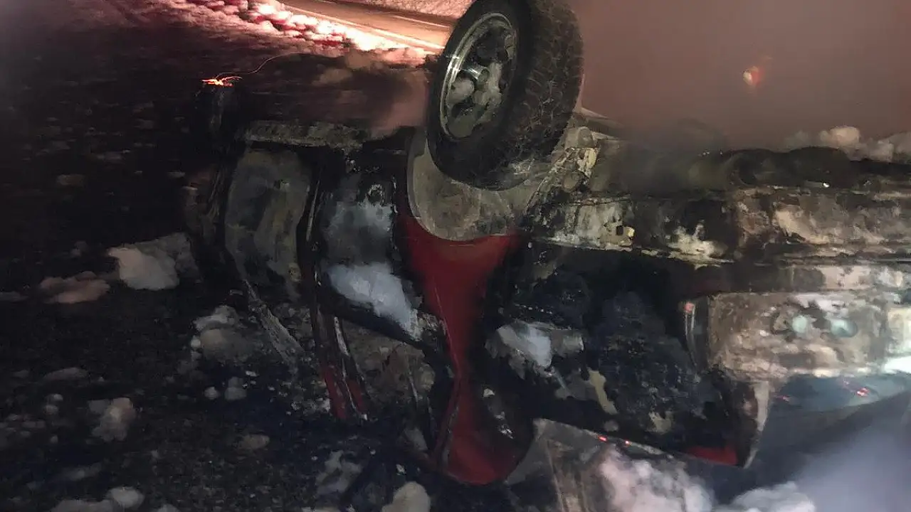 Adıyaman'da, buzlanan yolda kayarak takla atan otomobil cayır cayır yandı.