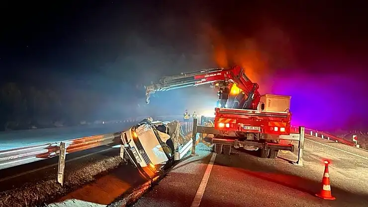 Afyonkarahisar'da kontrolden çıkarak takla atıp orta refüje giren ve hurdaya dönen otomobilde anne ve çocuğu yaralandı.