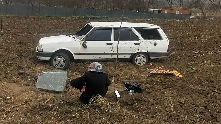 Bursa'nın İnegöl ilçesinde takla atıp yol kenarındaki tarlaya devrilen otomobilin sürücüsü Mehmet Akbaba (68) ile yanındaki Suriye uyruklu eşi Thanaa Akbaba (69) yaralandı.