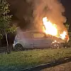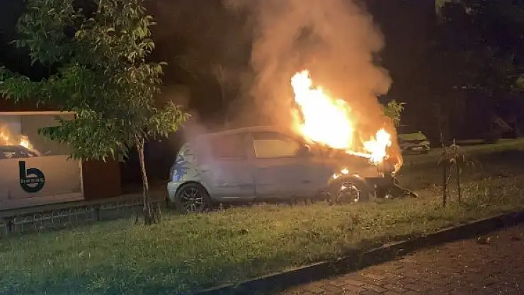 Taklalar atan otomobil alev aldı, sürücü son anda kurtarıldı