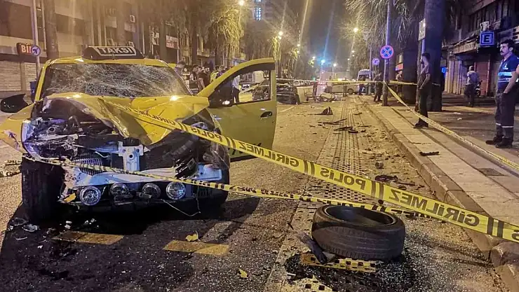 İzmir'in Konak ilçesinde, ticari taksi önce kağıt toplayıcısına ardından ise park halindeki araca çarptı.