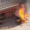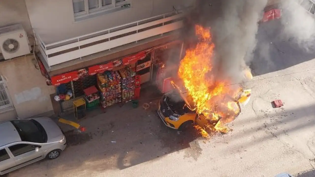 Takside yangın çıktı, iş yeri ile iki katlı ev yandı
