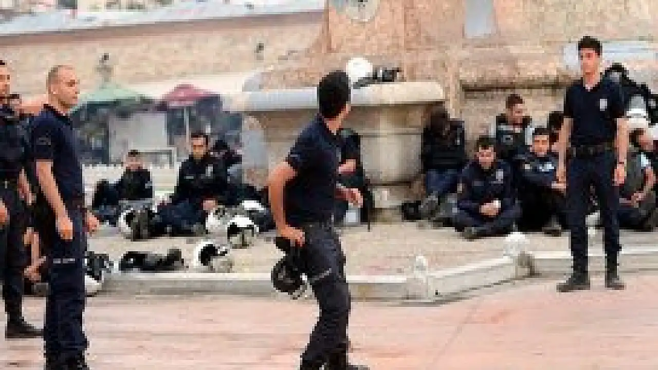 Polis ile göstericiler arasında gece çatışmaların meydana geldiği Taksim güne sakin başlarken Cumhuriyet Anıtı çevresinde bir grup polis top oynayarak stres atmaya çalıştı.