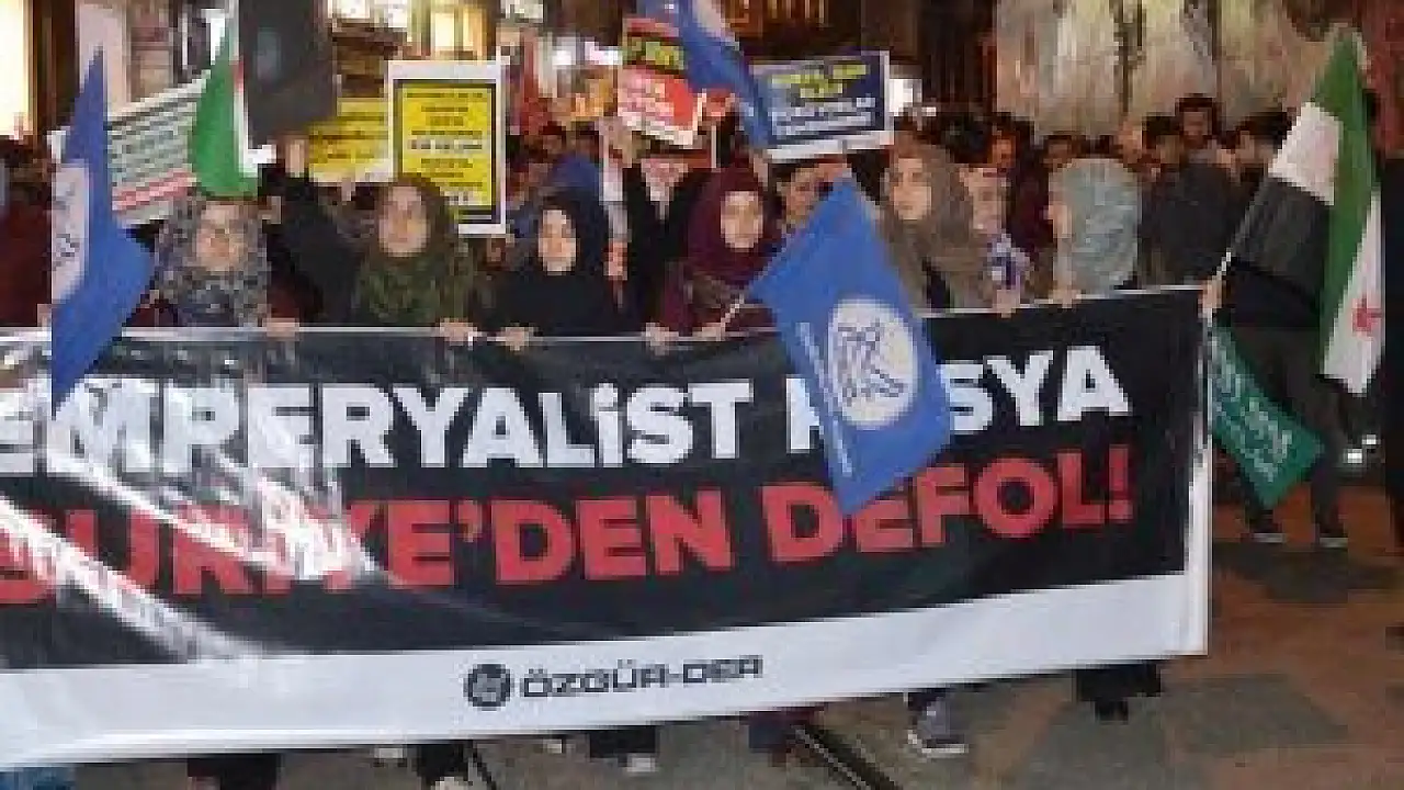 Özgür-der üyeleri, Galatasaray Lisesi önünde toplanarak, "Katil Rusya Afganistan'ı unutma!" ve "Emperyalist Rusya Suriye'den defol!" pankartları açtı.