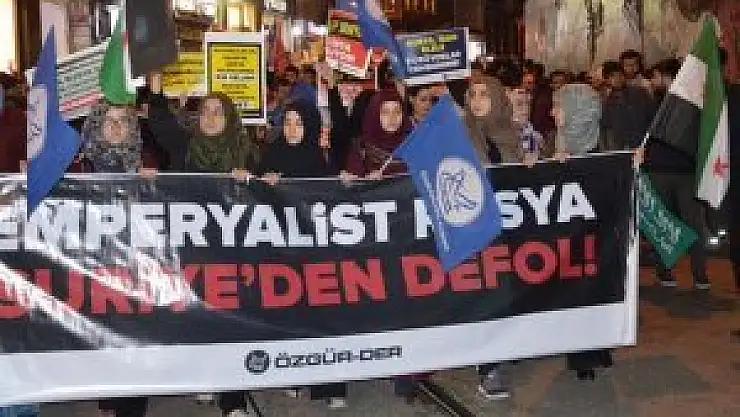 Burada sık sık tekbir getiren gruptakiler, çeşitli sloganlarla Rusya'yı protesto etti.