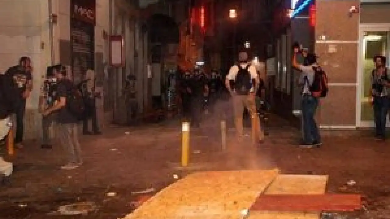Basın açıklamasını yapan grup, açıklamanın ardından dağılmadı ve polise şişe ile yumurta attı. Defalarca yapılan uyarıların dikkate alınmaması üzerine gruba sivil ekipler müdahale etti.