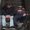 Evsiz oldukları öğrenilen iki şahsın kullandıkları madde yüzünden sızarak yürüyen merdivenlerde uyumaları kameralara yansıdı.