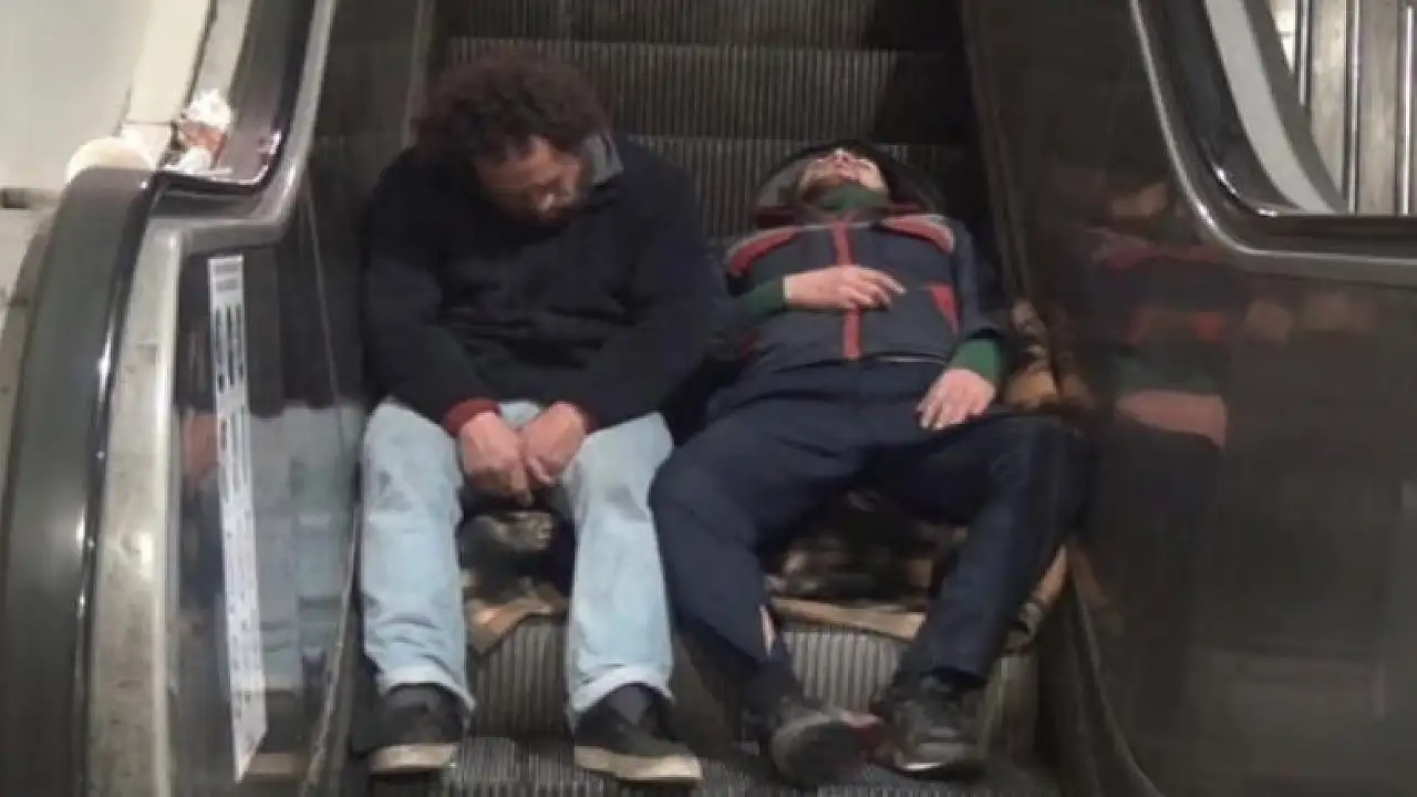 İstanbul Taksim Meydanı alt geçidinin yürüyen merdivenleri, yürek sızlatan görüntülere sahne oldu. Madde bağımlısı iki şahsın merdivenlerde sızarak uyumaları kameralara yansıdı.