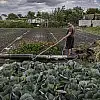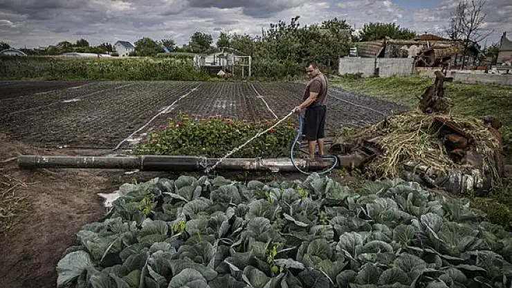 Kiev bölgesinde, nüfusu 9 bini aşkın yerleşim yeri Velika Dimerka'da yaşayan bir aile, Ukrayna ile Rus orduları arasında martta yaşanan çatışmalar sırasında vurulan Rus güçlerine ait tankın enkazının bulunduğu bahçesinde sebze yetiştiriyor.