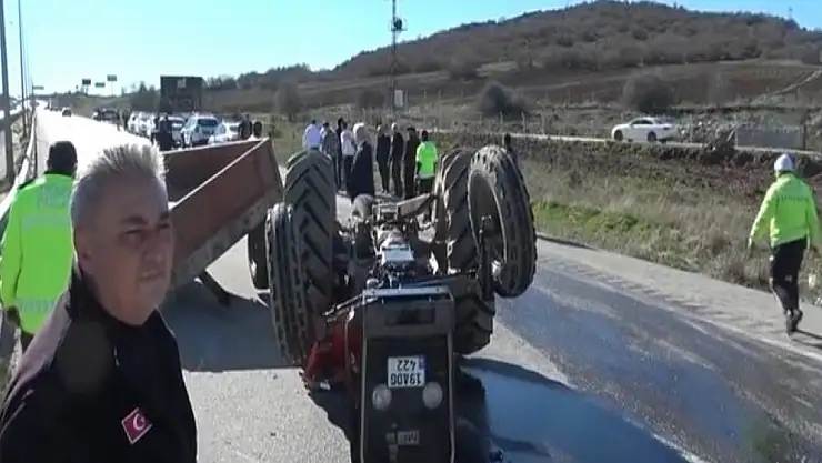 ÇORUM'da yakıt yüklü tankerin arkadan çarptığı traktör devrildi. Aracın altında kalan sürücü Mizrabi Cihangir (58), ağır yaralandı.