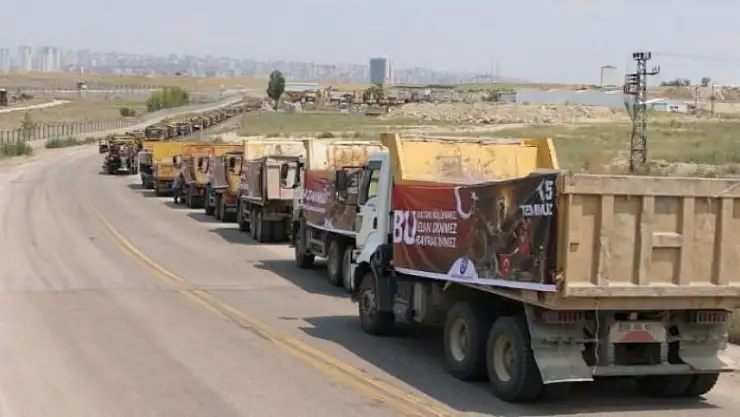 "15 Temmuz’u unutmadık, unutmayacağız" pankartlarının yazılı olduğu Fen İşleri, ASKİ, EGO ve Kent Estetiğine ait 400 kamyon, otobüs ve iş makinesi, Ankara Büyükşehir Belediyesi Güvercinlik tesislerinden hareket ederek İstanbul yolu, Ankamall Kavşağı-Samsun yolu, Eskişehiryolu ve Konya yolu güzergahlarını izleyerek Ankamall önünde turu tamamladı.