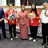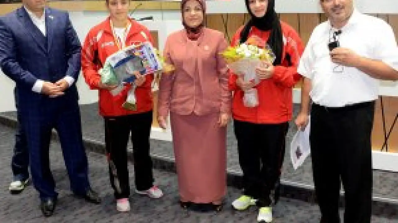 Meram Belediye Başkanı Fatma Toru, şampiyon sporcu ile antrenörlerine çeşitli hediyeler verdi.