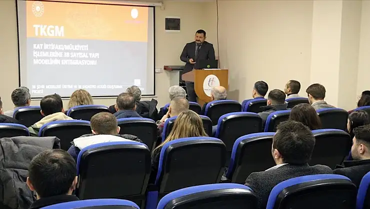 Tekirdağ Tapu ve Kadastro Müdürlüğü Toplantı Salonu'nda düzenlenen bilgilendirmede, kat irtifakı, kat mülkiyetine konu olan işlemlerde "aplikasyon projesi" ile mimari projelerin üç boyutlu sayısal yapı modeli uygulamaları anlatıldı.