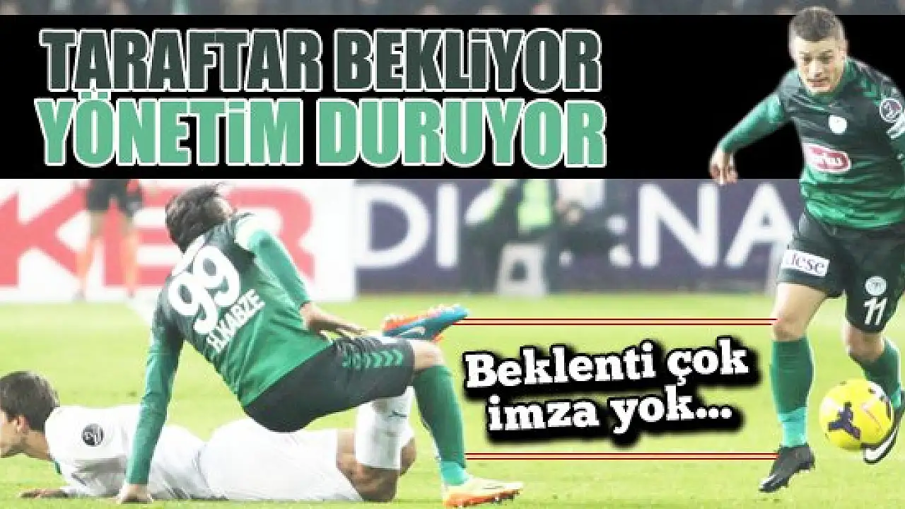 Torku Konyaspor'da Bursaspor maçında son dakikada alınan mağlubiyetin üzüntüsü sürerken, yeşil beyazlı takımın taraftarı acilen transfer bekliyor. Ancak yönetim henüz hiçbir oyuncuya imza attıramadı.