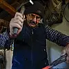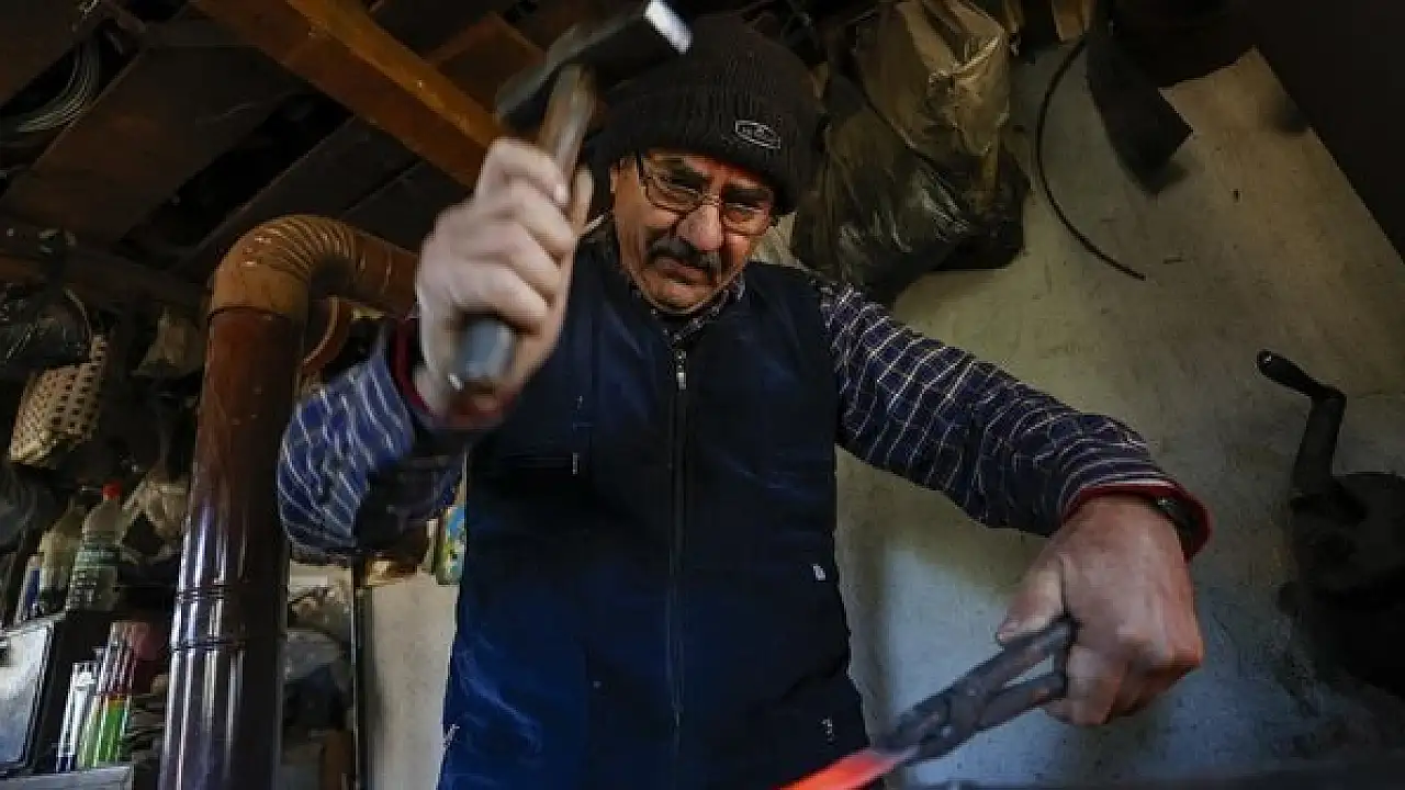 Atölyesindeki körüğünde erittiği çeliği döverek sabırla bıçağa dönüştüren Uslu, bıçağın sapını ise keçi ve geyik boynuzundan yapıyor.