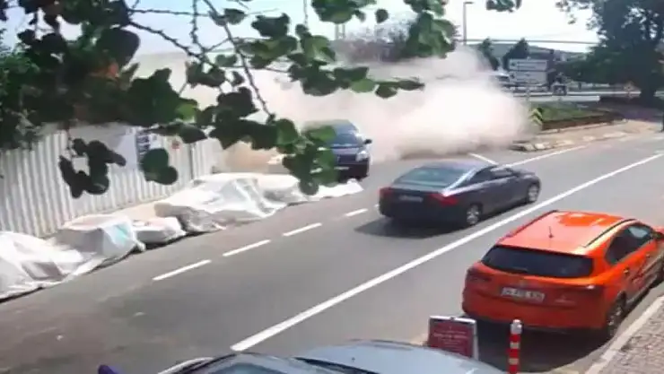 1 kişinin öldüğü, 1 kişinin yaralandığı, restorasyonu süren tarihi binanın duvarının çökme anı anbean kameraya yansıdı.