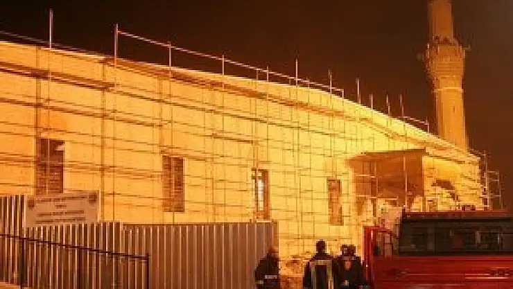 Konya'da restorasyon çalışması devam eden tarihi Alaaddin Camisi'nde çıkan yangın büyümeden söndürüldü.