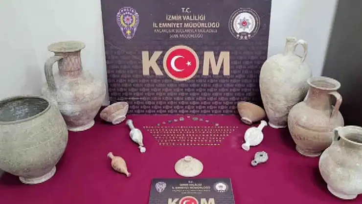 İzmir Emniyet Müdürlüğü Kaçakçılık Suçlarıyla Mücadele Şube ekipleri, tarihi eser kaçakçılarının satışa hazırlandığı bilgisi üzerine harekete geçti. Buca ilçesinde durdurulan iki araçta Lidya, Roma, Bizans ve Osmanlı dönemlerine ait olduğu değerlendirilen 177 adet sikke, 1 adet altın yüzük, 12 adet pişmiş toprak kap, 1 adet metal obje yer aldı. Olayla ilgili gözaltına alınan 4 şüpheli hakkında adli işlem yapıldı.