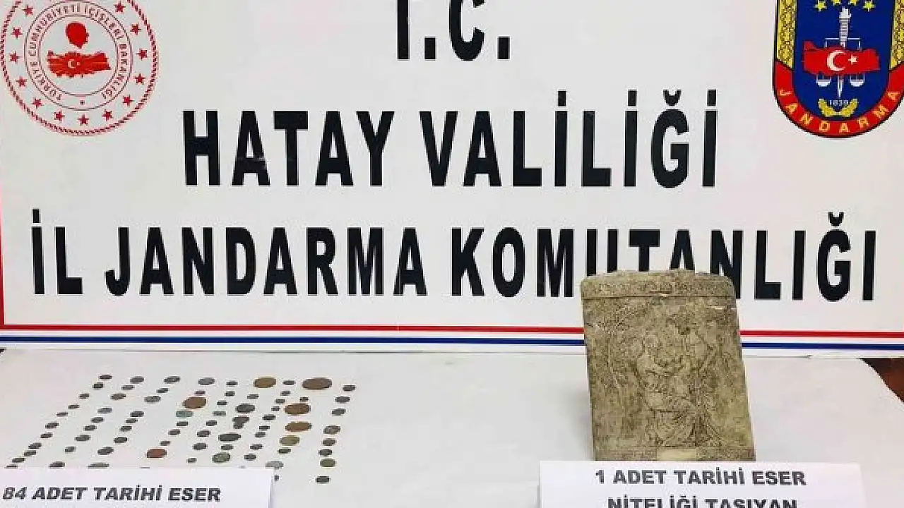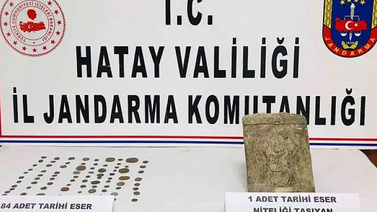 Hatay'da düzenlenen tarihi eser operasyonunda 84 adet sikke ile 1 adet taştan tablo ele geçirildi.