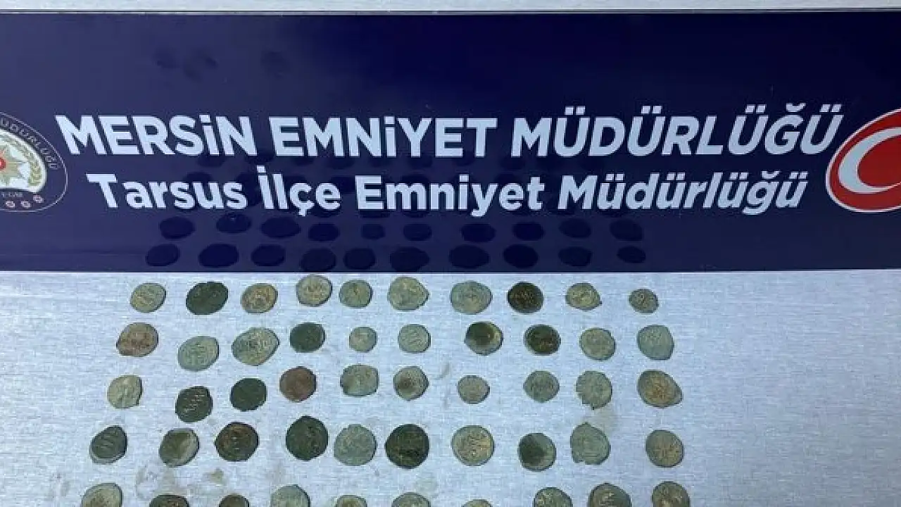 Mersin'in Tarsus ilçesinde yapılan operasyonda 50 tane tarihi eser niteliği taşıyan sikke ele geçirildi.