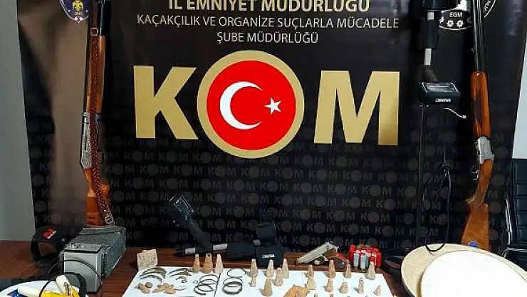 İl Emniyet Müdürlüğü Kaçakçılık ve Organize Suçlarla Mücadele (KOM) Şubesi ekipleri, Yatağan ilçesinde V.Y., (45) ile kardeşi O.Y.'nin (41) ellerindeki tarihi eserleri satmak için müşteri aradığı istihbaratına ulaştı. Şüphelilerin birlikte kaldığı eve düzenlenen operasyonda Helenistik döneme ait 57 bronz sikke, 3 ok ucu, 6 altın bilezik, 3 altın yüzük ile 1 ruhsatsız tabanca, 4 dedektör, 3 dedektör tablası, 3 patlayıcı, 3 akü, 1 kulaklık, 15 bakır çubuk, 2 av tüfeği, 34 fişek ve 40 diaspor taşı ele geçirildi.