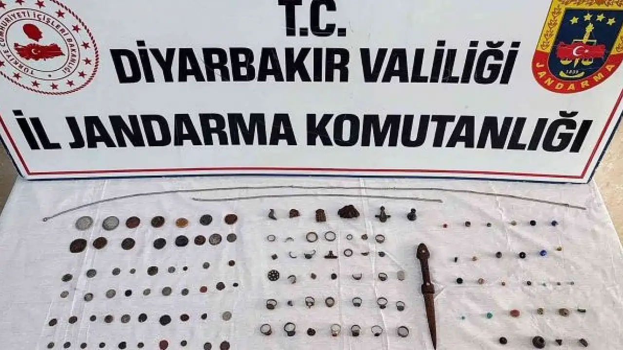 Diyarbakır İl Jandarma Komutanlığı tarafından yapılan çalışmalar neticesinde, Bağlar ilçesinde ikamet eden şahısların ellerinde bulundurdukları çeşitli eski eserleri 1 milyon 250 bin TL karşılığında satmak için müşteri aradıkları yönünde bilgi elde edildi. Şüpheliler, Bağlar Gömmetaş Mahallesi'nde tarihi eserleri satmaya çalıştıkları esnada suçüstü yakalandı. Şahısların üzerlerinde ve araçlarında yapılan aramada, Osmanlı, Bizans ve Urartu dönemine ait olduğu değerlendirilen 61 adet sikke, 28 adet yüzük, 7 adet obje, 3 adet mühür, 1 adet hançer, 1 adet 163 santim uzunluğunda zincir ve 31 adet farklı ebatlarda taş olmak üzere toplam 132 adet tarihi eser ele geçirildi. Ele geçirilen tarihi eserler muhafaza altına alınarak Müze Müdürlüğüne teslim edilirken, yakalanan 3 şüpheli hakkında soruşturma başlatıldı.