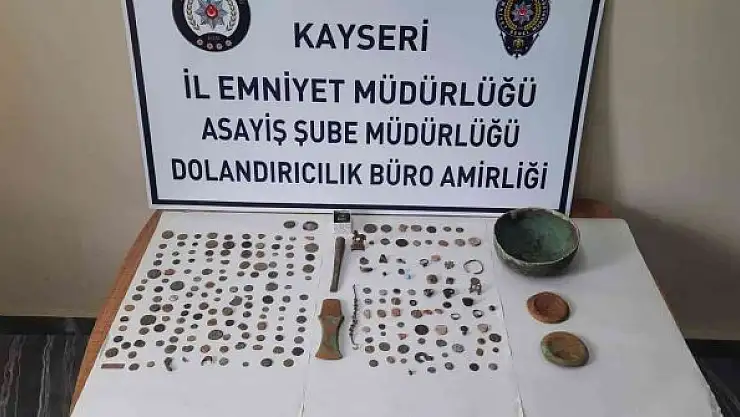 Kayseri'de polis ekipleri tarafından yapılan uygulamada tarihi eser olduğu değerlendirilen objeler ele geçirildi.
