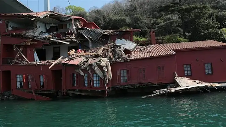 Boğaz'daki yalının denize doğru kaydığı vurgulanırken, tarihi yapının her an tamamen çökebileceği kaydedildi.