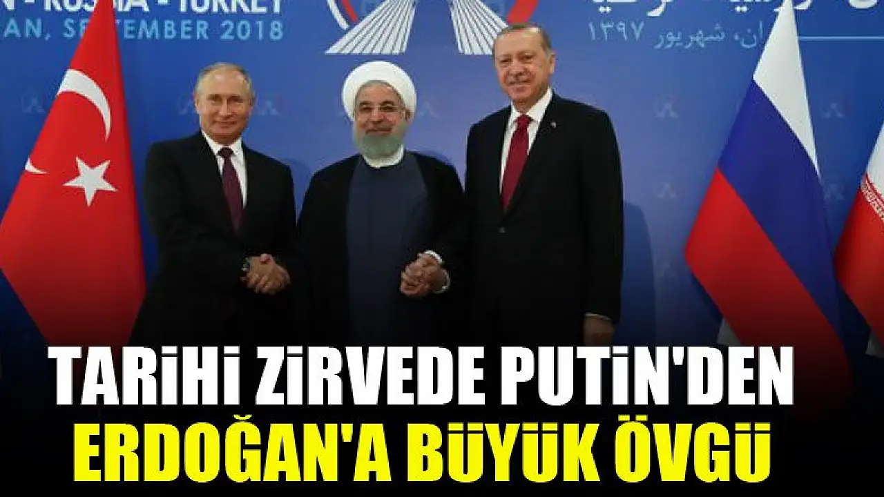 Tahran'da yapılan tarihi Suriye zirvesinin ardından iran Cumhurbaşkanı Ruhani, devlet başkanı Putin ve Başkan Erdoğan kameraların karşısına geçti. İdlib konusundan neler yapılacağının konuşulduğu toplantıda Putin açıklamasında başkan Erdoğan'ın tüm taraflara ateşkes çağrısına "çok cesur bir adımdı" dedi.