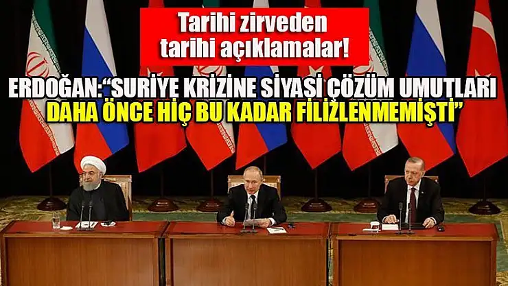 'Suriye' konulu Türkiye-Rusya-İran Üçlü Zirvesi'nin ardından Türkiye Cumhurbaşkanı Recep Tayyip Erdoğan, Rusya Devlet Başkanı Vladimir Putin ve İran Cumhurbaşkanı Hasan Ruhani açıklama yaptı.