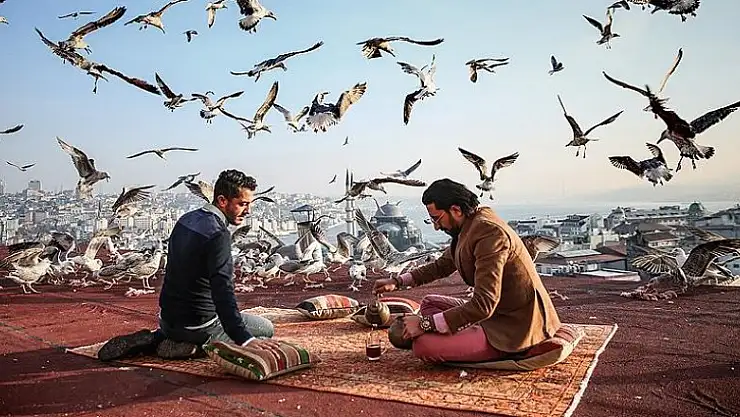 İstanbul'un Eminönü Sağır Han’da bulunan ‘Kubbe İstanbul’ isimli kültür ve sanat merkezinin sahipleri Harun Reşit Göktaş ve Fahri Akdağ, kahvaltılarını çalışanlarıyla iş yerlerinin terasından görünen İstanbul manzarası eşliğinde yapıyorlar. Zaman zaman merkezi ziyaret eden misafirleri ve turistleri de bu manzaradaki kahvaltıya davet eden mekan sahipleri, misafirlerine hem eşsiz bir İstanbul manzarası görmeleri imkanını veriyor hem de İstanbul’un simgesi haline gelen martılar eşliğinde tarihin seyrinde kahvaltı yapmalarını sağlıyor.