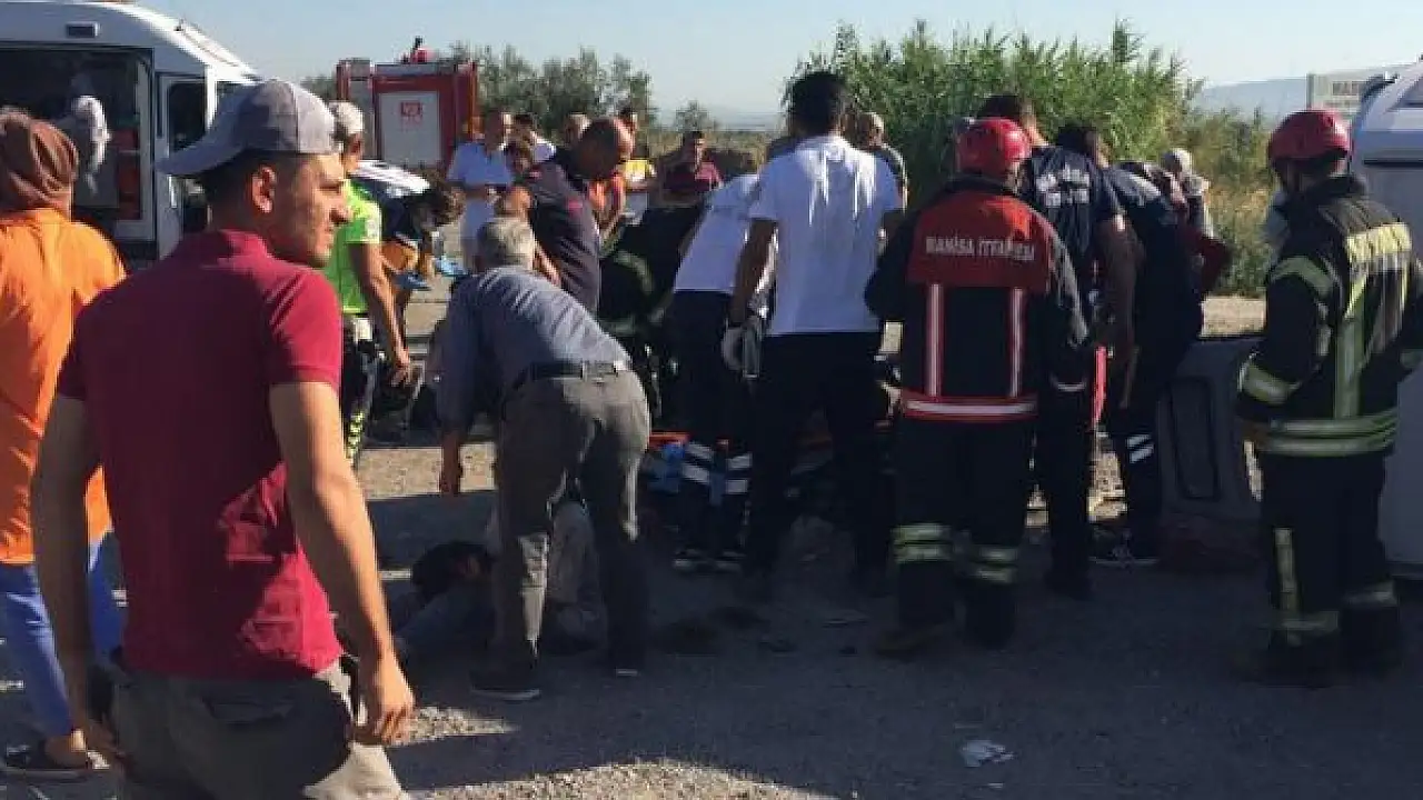 MANİSA'da tarım işçilerini taşıyan servis minibüsü devrildi, 1'i ağır 21 kişi yaralandı.