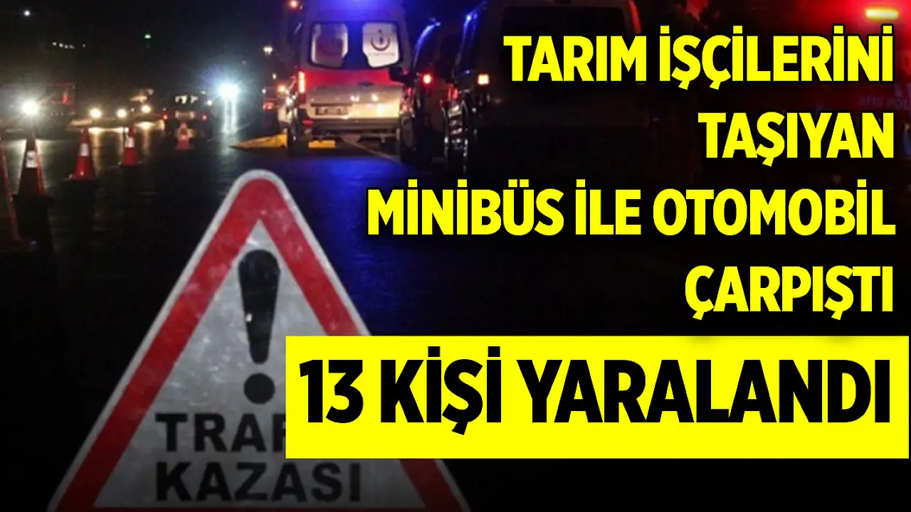 Tarım işçilerini taşıyan minibüs ile otomobil çarpıştı: 13 yaralı