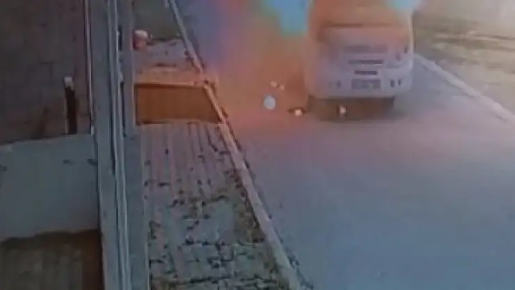 MERSİN'in Tarsus ilçesinde tarım işçilerini taşıyan servis minibüsü seyir halindeyken alev aldı. Sürücünün durarak yolcuları tahliye etmesinden kısa süre sonra aracın içi alev topuna döndü. Yangın, itfaiye ekibinin müdahalesiyle söndürüldürken olay anı bir işyerinin güvenlik kamerasına yansıdı.