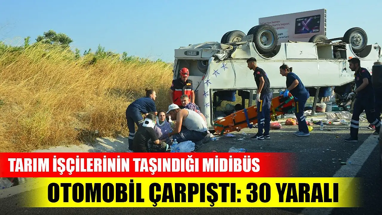 MANİSA'nın Soma ilçesinde, tarım işçilerinin taşındığı midibüs ile otomobilin çarpıştığı kazada 1'i ağır 30 kişi yaralandı.