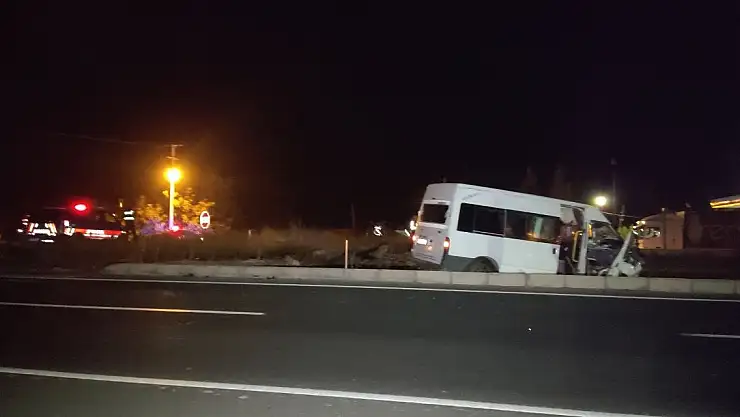 Nevşehir'de, tarım işçilerinin taşındığı minibüs ile otomobil çarpıştı. Çarpışmanın şiddetiyle otomobil yol kenarındaki bir iş yerinin duvarına, minibüs ise refüje çarparken, kazada 14 kişi yaralandı.