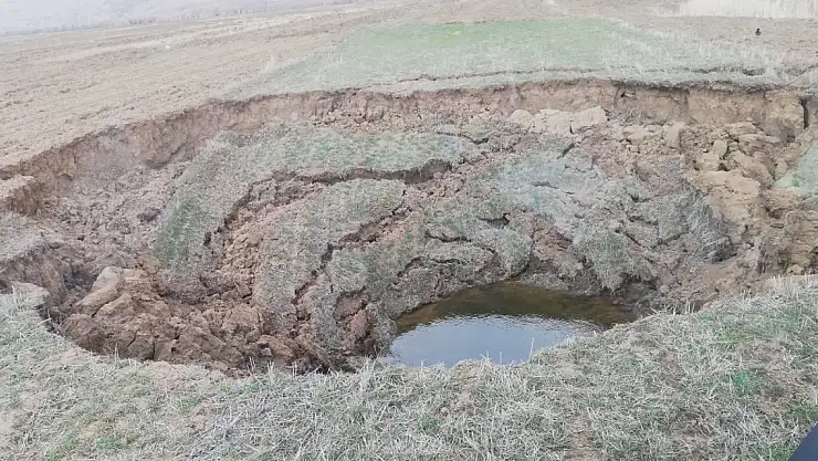 SİVAS'ın Zara ilçesi kırsalında bir tarlada yaklaşık 15 metre çapında obruk oluştu.