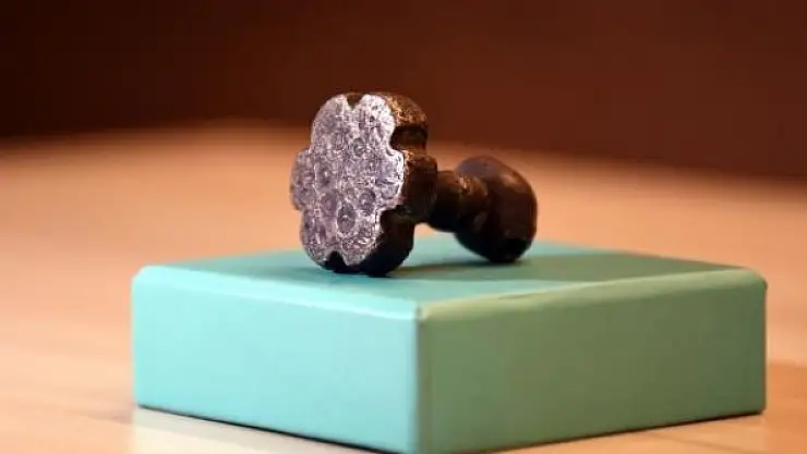 Çorum Müzesi’nde uzmanlar tarafından incelemede madeni mührün baskı kısmı çiçek biçimli, yukarı doğru incelen sap kısmı fasetli ve halka kabartma bezemeli olduğu belirlendi.