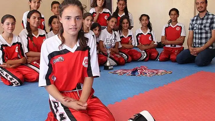 Gaziantep'in Nizip ilçesine bağlı Kumla köyünde yaşayan ortaokul öğrencisi 13 yaşındaki Saadet Arslan, sınıf öğretmeninin düzenlediği kurs sayesinde yaklaşık 1,5 yıl önce kick boksla tanışan Saadet, köydeki ön yargılara inat başarılarıyla göz dolduruyor.