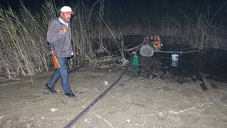 Beyşehir ilçesinde bir mahallede, tarlalarına su çekmek için göl kıyısına su motoru kuran çiftçiler, yaban domuzlarının ardından şimdi de su motorlarının çalınmaması için geceleri tüfekle nöbet tutmaya başladı.