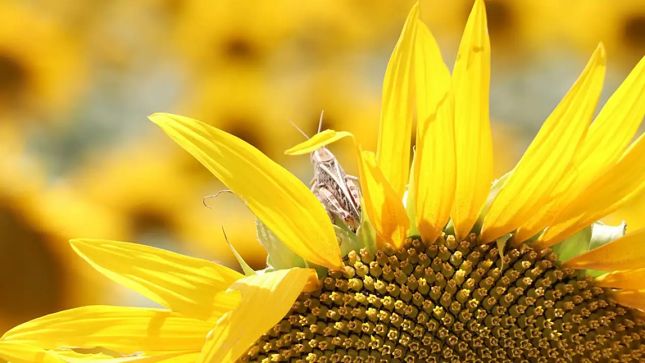TEKİRDAĞ'ın Muratlı ilçesinde yaklaşık 3 bin dekar ekili ayçiçeği tarlasına çekirge dadandı.