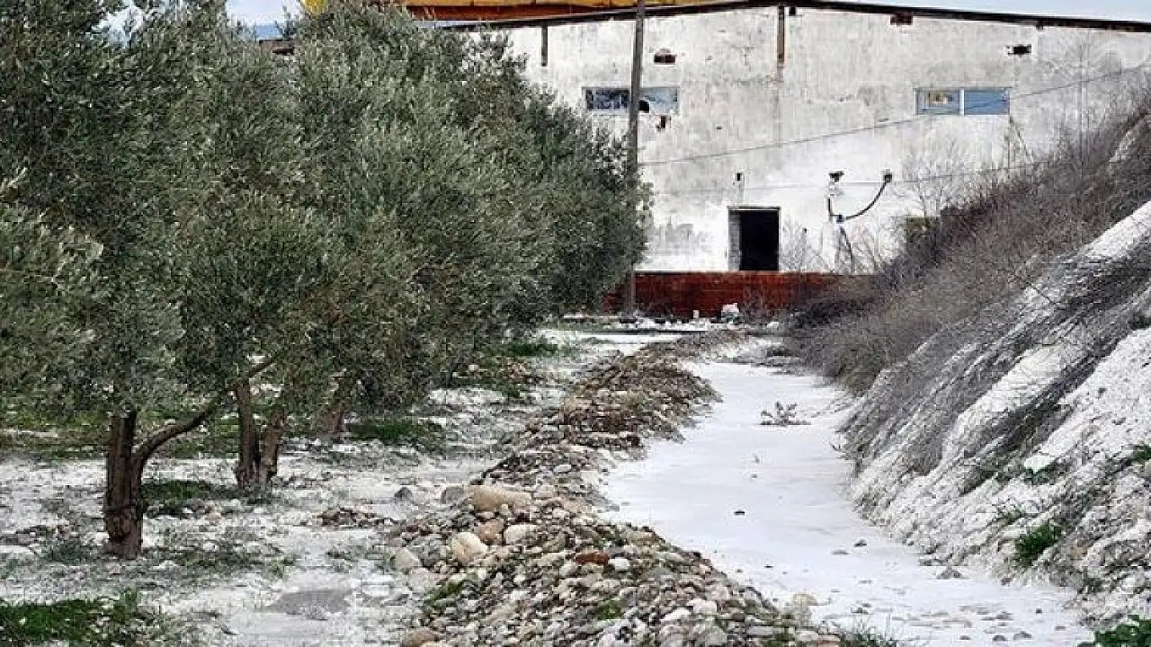 Muğla'nın Yatağan ilçesinde tarlasının üzerini örten beyaz tabakayı önce kar sanan çiftçi, bir süre sonra beyazlığın bölgede atık deposu taşan mermer ocağından kaynaklandığını belirledi.