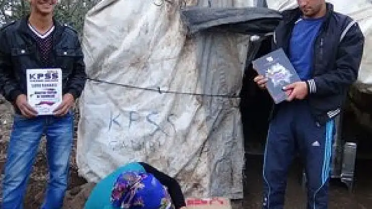 Üzerinde “KPSS çadırı” yazan yerde KPSS'ye girecek olan 5 kişi imkansızlıklar içerisinde sınava hazırlanıyor.