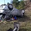 Kastamonu'nun Taşköprü ilçesinde yoldan çıkan otomobil, tarlaya yuvarlandı. Araçta bulunan 2 kişi yara almadan kurtuldu.