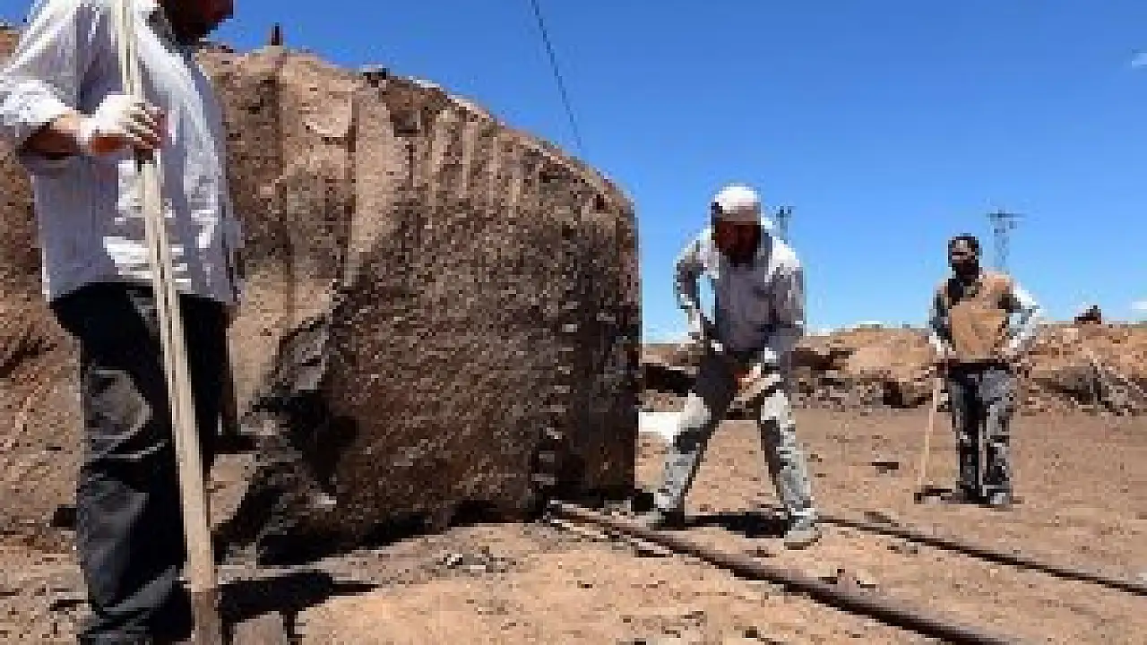 Ahlat ilçesindeki taş işçileri, ramazan ayında sıcak havaya rağmen gün boyu oruç tutup balyoz sallıyor.
