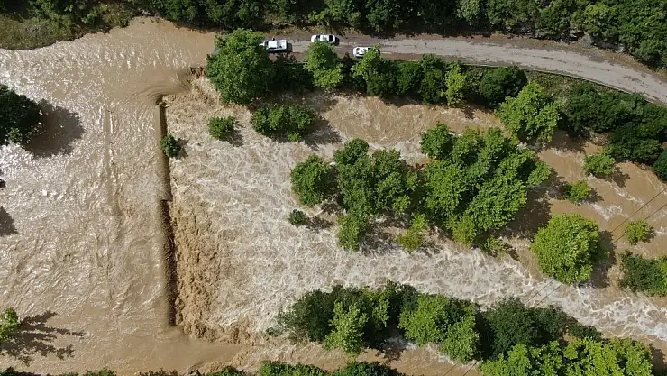 ŞİLE'de şiddetli yağış sele dönüştü. Selin de etkisiyle Hacıllı Mahallesi'ndeki dere taştı. Dere ve çevresinde bir çok yol su altında kaldı. Selin etkisiyle su altında kalan ormanlık alan ve yollar drone ile görüntülendi.