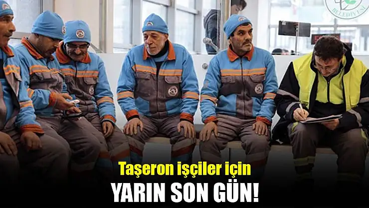 Yaklaşık 1 milyon taşeron işçisinin kadroya geçişi ile ilgili tanınan başvuru süresi yarın sona eriyor. Kadroya geçme şartlarını karşılayan taşeron işçilerin yarın mesai bitimine kadar ilgili birimlere başvurması gerekiyor.