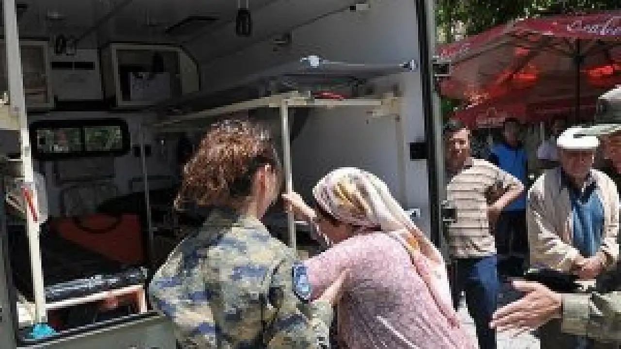 Vatandaşlara çeşitli konularda bilgi veren Albay Özcan, "Burada Sağlık Bakanlığı ile birlikte bir sağlık kompleksi kurduk. Buradaki hastane 6 bin hastaya hizmet vermektedir. 'Çevredeki köylere de gidelim ihtiyacı olanlar vardır, bir sağlık desteği hizmeti verelim' istedik. Çünkü bizler sizin bir parçanızız, sizler de bizlerin bir parçasısınız." dedi.