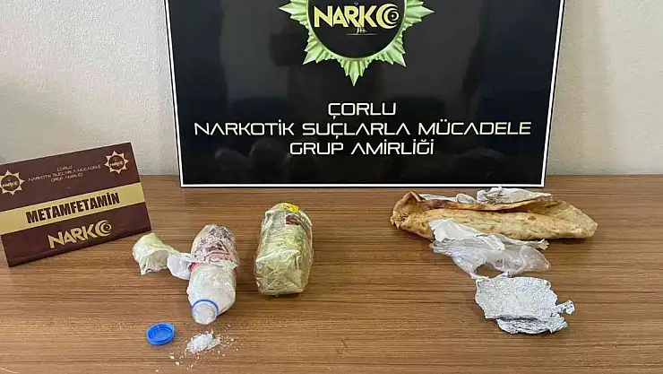 Tekirdağ'ın Çerkezköy ilçesinde polis ekiplerinin düzenlediği uyuşturucu operasyonunda tavuk dönerin arasına gizlenmiş 2.60 gram metamfetamin ele geçirildi.
